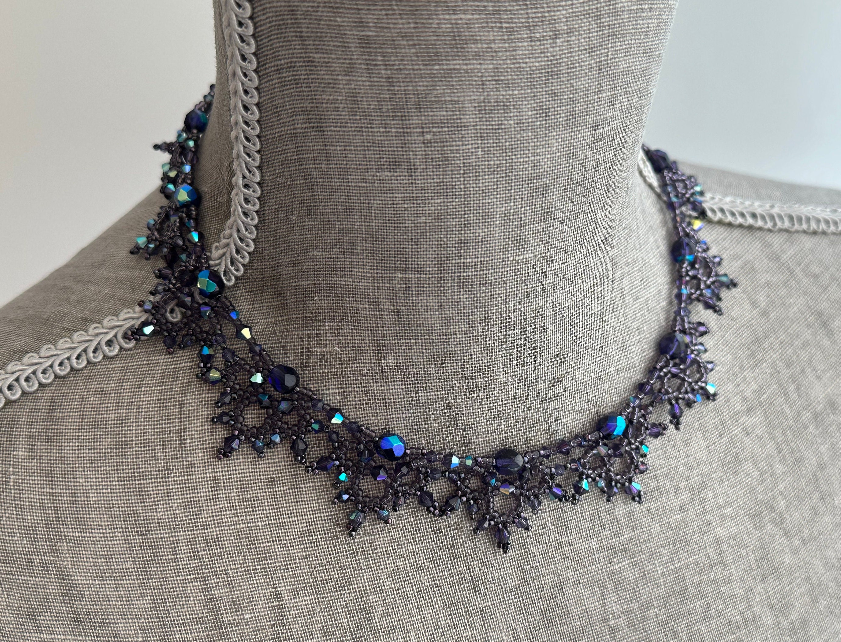 The Victorian necklace in Iridescent Black: https://isabeldesignstudio.etsy.com/listing/1578627119